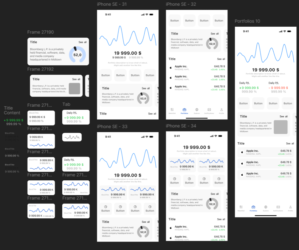 1. The initial client mockups were revised to address missing functionality, such as portfolio management tools and transaction shortcuts, and to ensure consistency across design elements.
